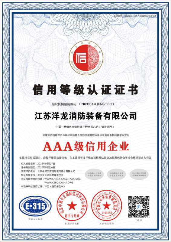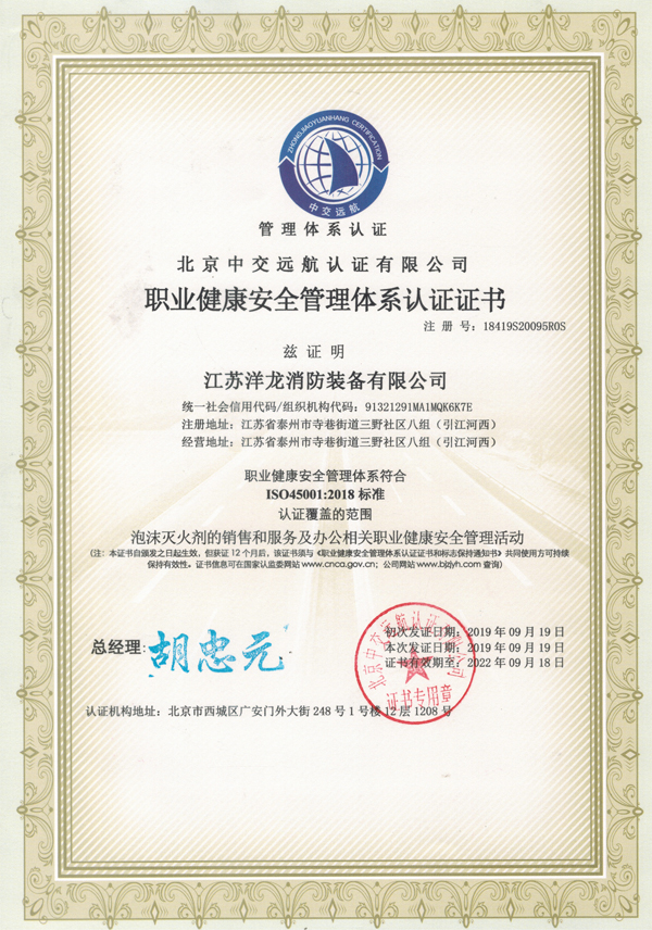 江苏洋龙消防装备有限公司是消防泡沫灭火剂、消防水带、消火栓箱、水枪接口等消防产品的专业生产加工公司,拥有完整、科学的质量管理体系。江苏洋龙消防装备有限公司的诚信、实力和产品质量获得业界的认可。江苏洋龙消防装备有限公司成立于2016年,位于扬子江畔京剧大师梅兰芳的故乡—泰州。南邻宁通高速、北有宁启铁路,引江运河依厂而过,交通运输十分便利。是公安部定点生产消防药剂、有衬里消防水带、消防栓箱等消防产品的专业厂家。生产设备优先,检测仪器齐全,技术力量雄厚,产品质量可靠。